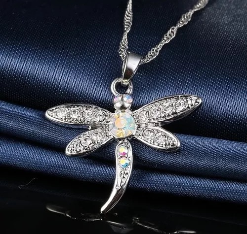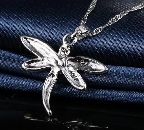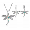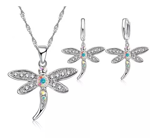Set De Collar Y Aretes Baño Plata 925 Y Zirconias, Libelula